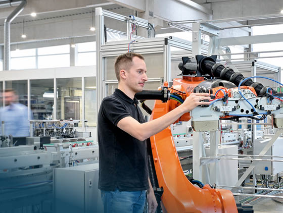 In der Industrie- und Prozessautomation nutzen wir erfolgreich eine Vielzahl von Roboteranwendungen, darunter Technologien führender Hersteller wie Kuka, ABB, Fanuc und Stäubli. Angesichts der rasanten technologischen Entwicklungen der letzten Jahre und dem zunehmenden Fachkräftemangel rücken verstärkt kollaborative Roboter (Cobots), die Seite an Seite mit Menschen arbeiten, in den Fokus. Diese innovativen Lösungen setzen wir in verschiedenen Anwendungen und Branchen ein, um die Flexibilität und Effizienz der Produktionsprozesse unserer Kunden zu maximieren.